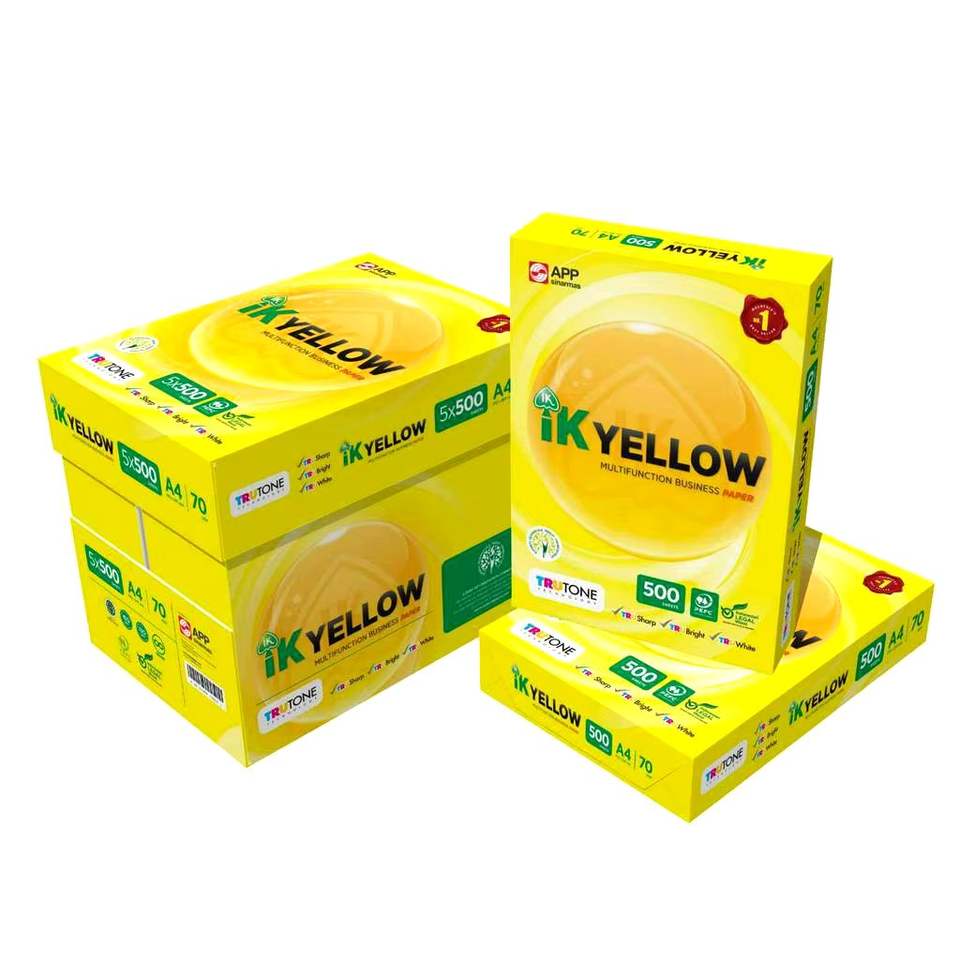 Original Quality IK Plus Paper A4 80g Weight Copy Paper 70gsm 75gsm 80gsm Yellow for Printing