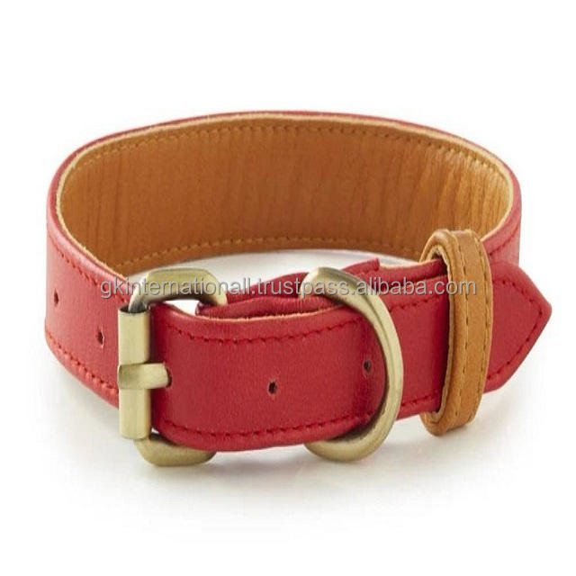 Original Single Layer Thick Saddle Leather Dog Collar in Many Color & Custom Sizes with Brass Roller Pin Buckle and D Ring