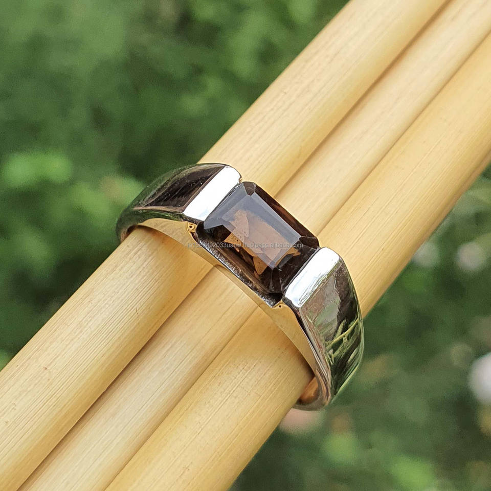 Product name:Natural Smoky Quartz 925 Sterling Silver Ring for Men