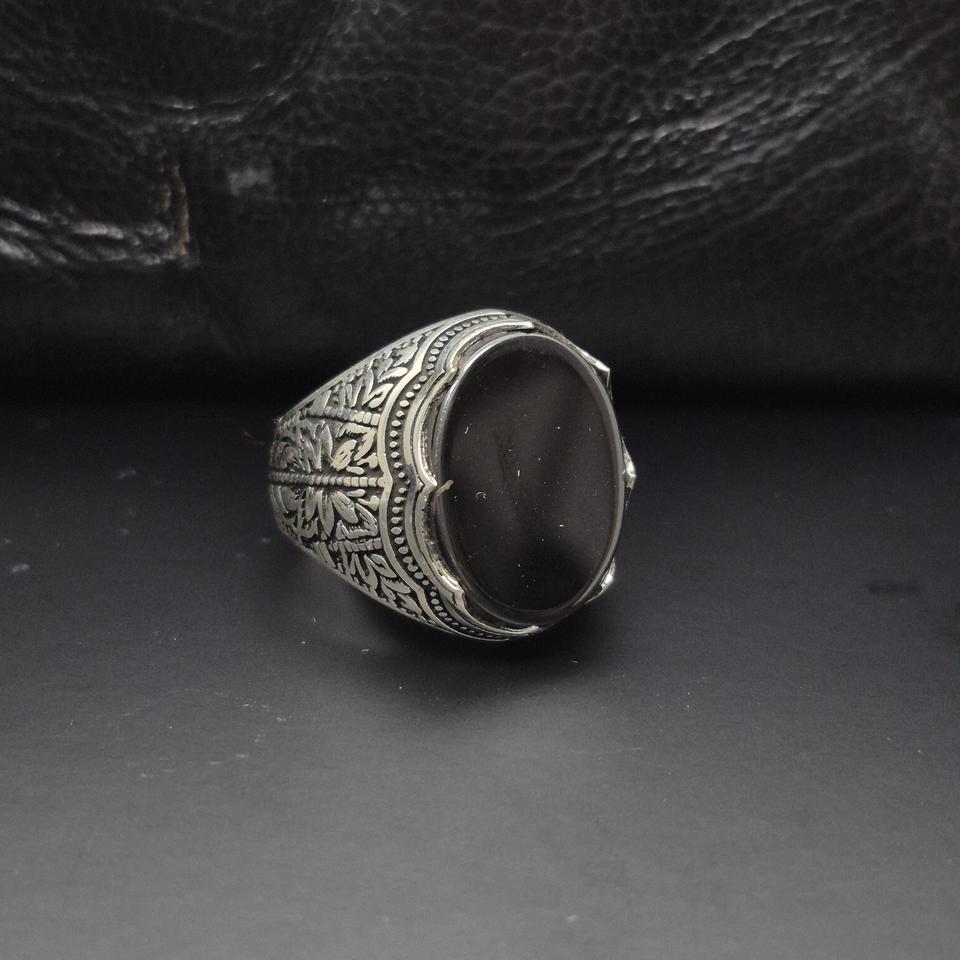 Original Turkish 925 Sterling Silver Onyx Men's Signet Ring with Oval Gift for Muslim Men Light Ring Black Stone Made in Turkey