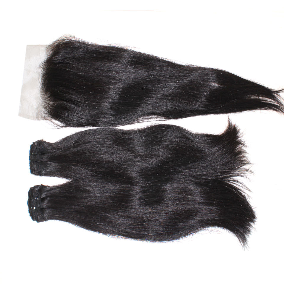 Original Vietnamese Raw Indian Human Hair Wigs Cheap 2 Bundles Straight Closure Brazilian Natural Hair