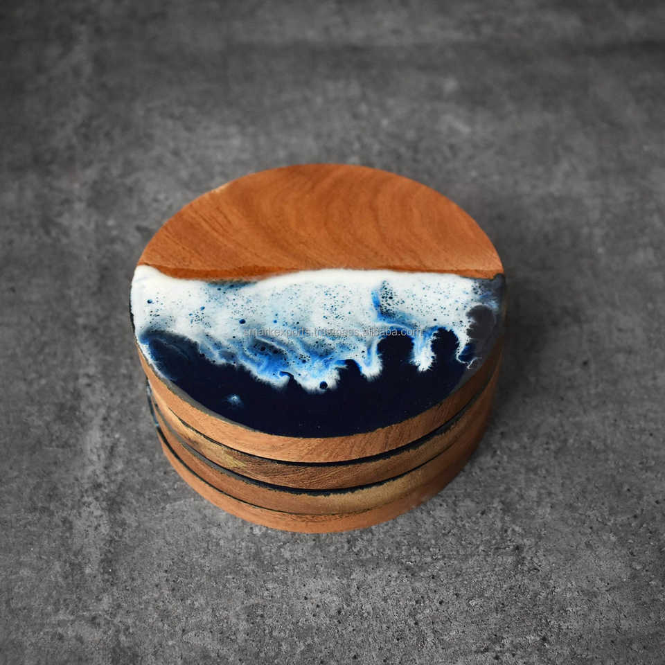 Original Wooden Resin Coasters Set Round and Square Drink Mat Cup Holder Tea Coaster Dining Room Modern Tabletop Stylish Decor