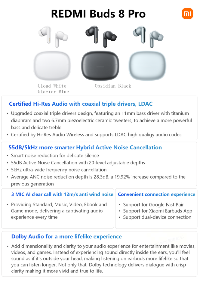 Original for REDMI Buds 8 Pro Smart Noise Cancellation Ultra-long battery life Flagship Sound Quality