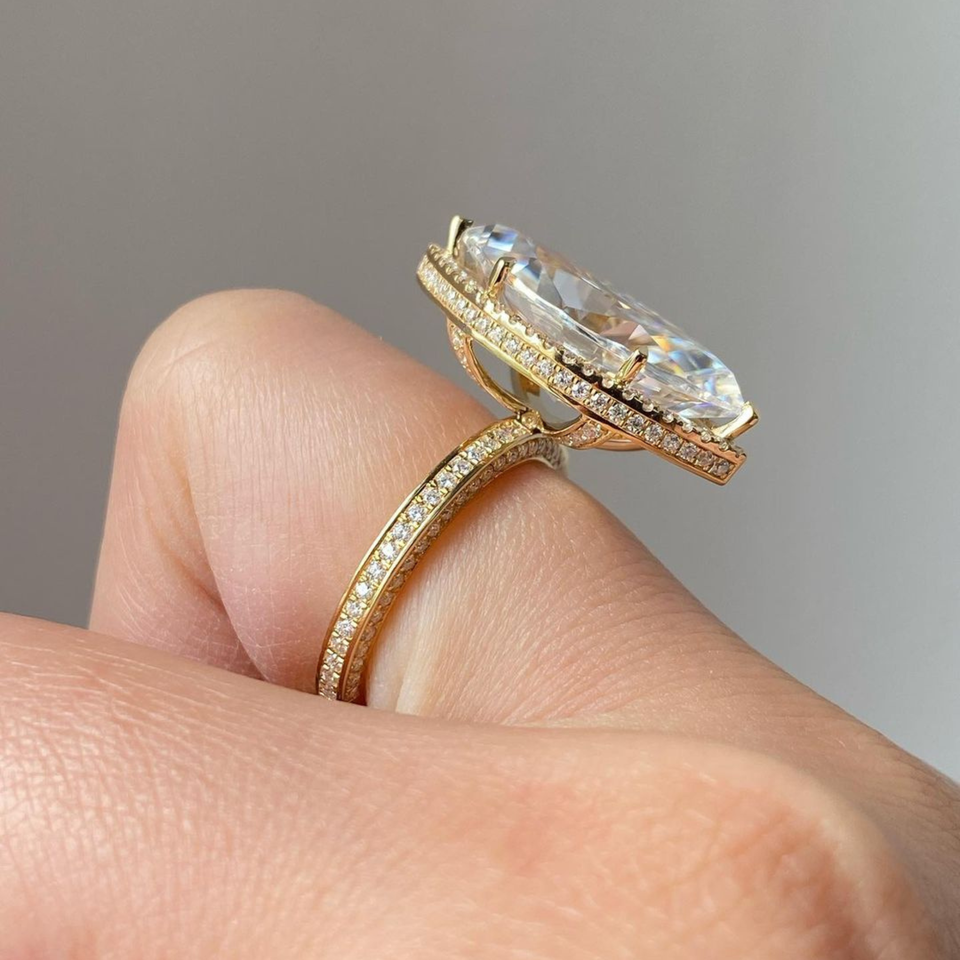 OriginalQuality 5.55 TCW Marquise Cut Moissanite Diamond Halo Setting Engagement Ring 14K Yellow Gold Wedding Jewelry Her