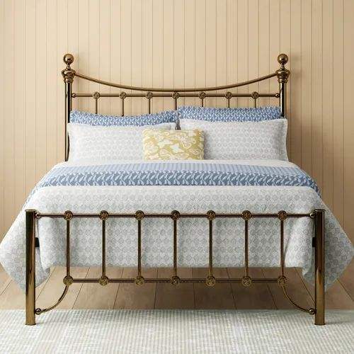 Ornamental Brass Bed Frame Featuring Detailed Metal Accents Durable Support For Royal Bedroom Styling