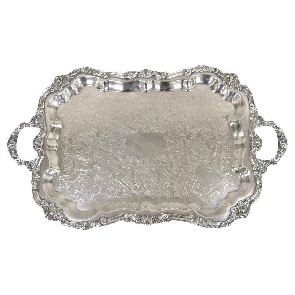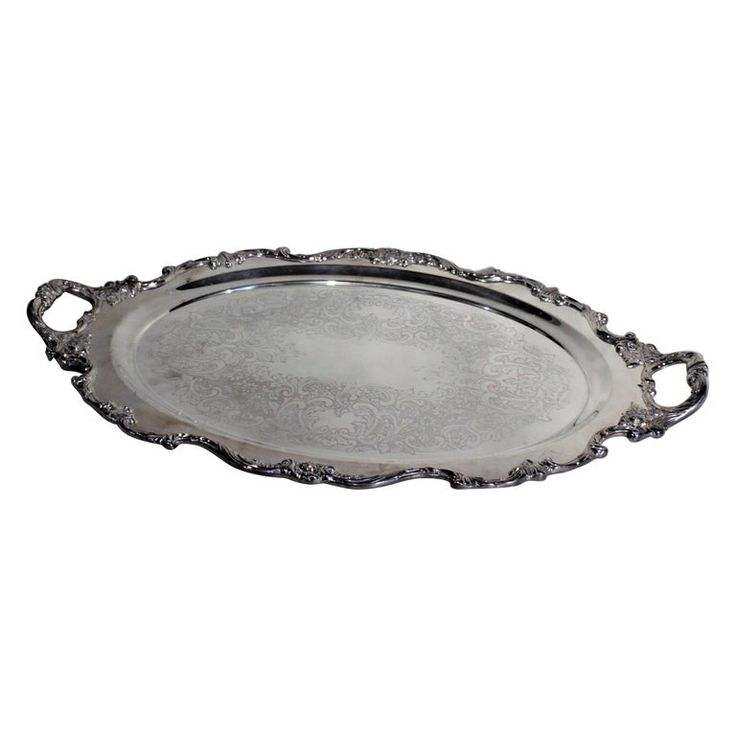 Ornamental Vintage Stainless Steel Serving Tray with Handles Silver Platter for Christmas Table Display Home Decor Coffee Tray