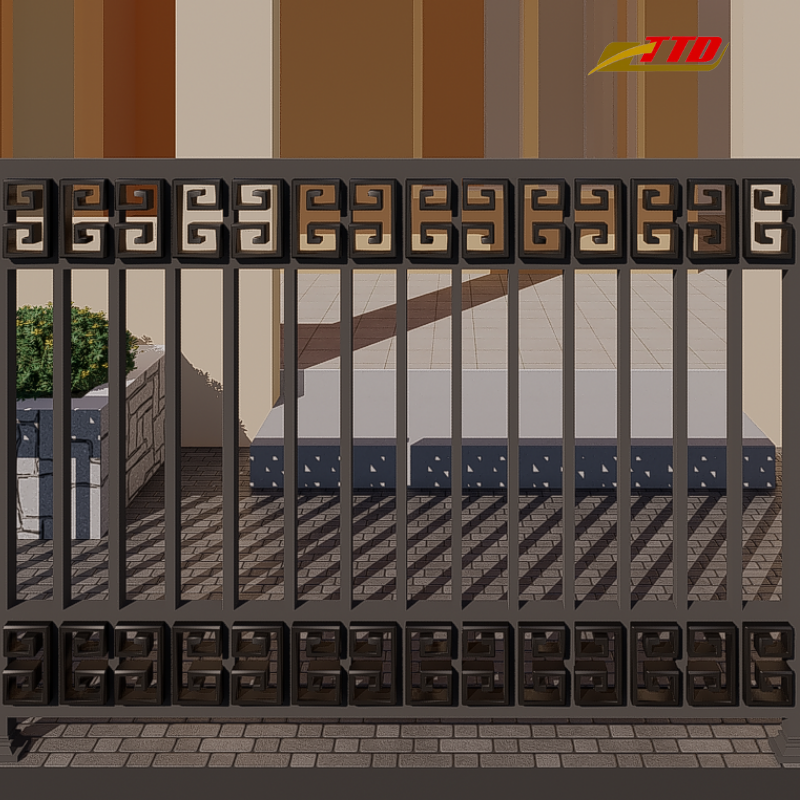 Ornamental wrought iron fence featuring privacy elements durable structure and decorative scrolls for upscale landscaping