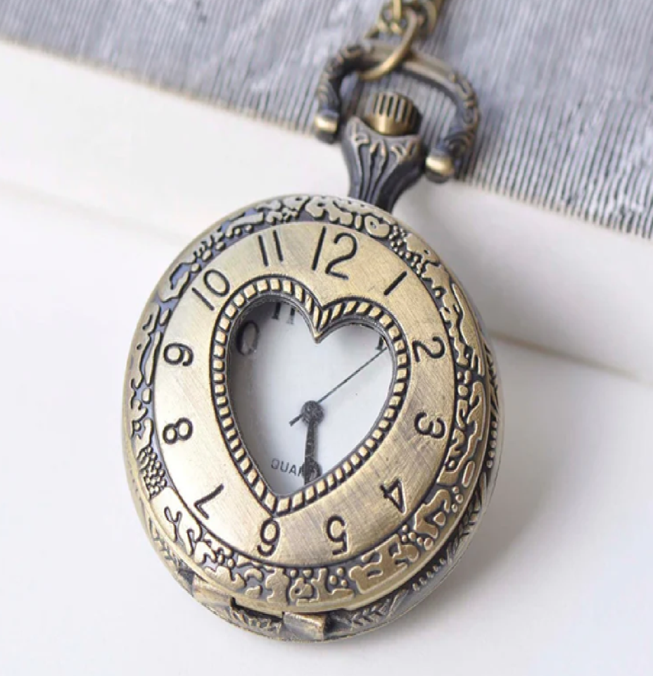 Ornate Bronze Heart-Shaped Locket Pendant Watch with Intricate Cutout Design on a Chain Necklace available At Wholesale prices