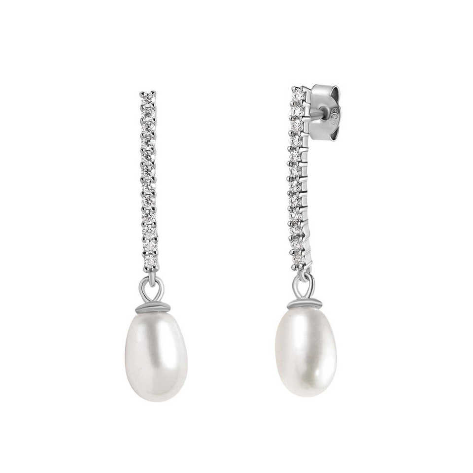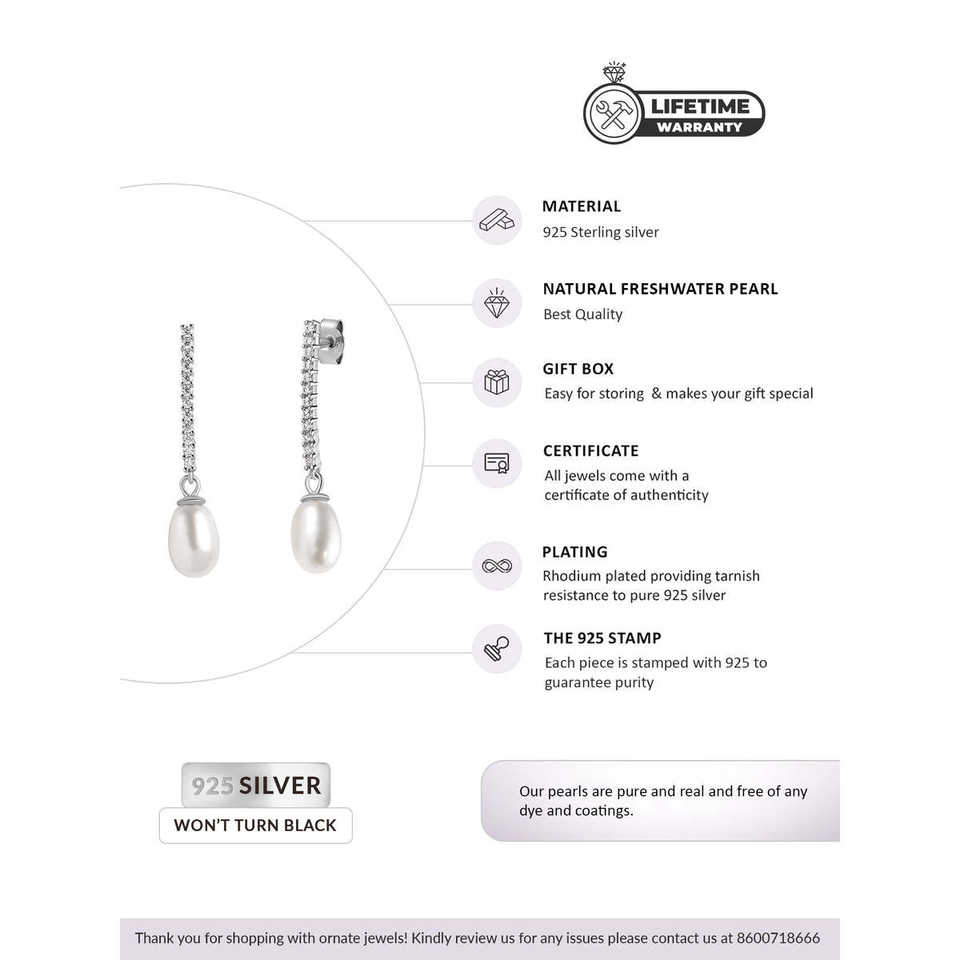 Ornate Jewels 925 Silver American Diamond Pearl Danglers Elegant Pearl Earrings