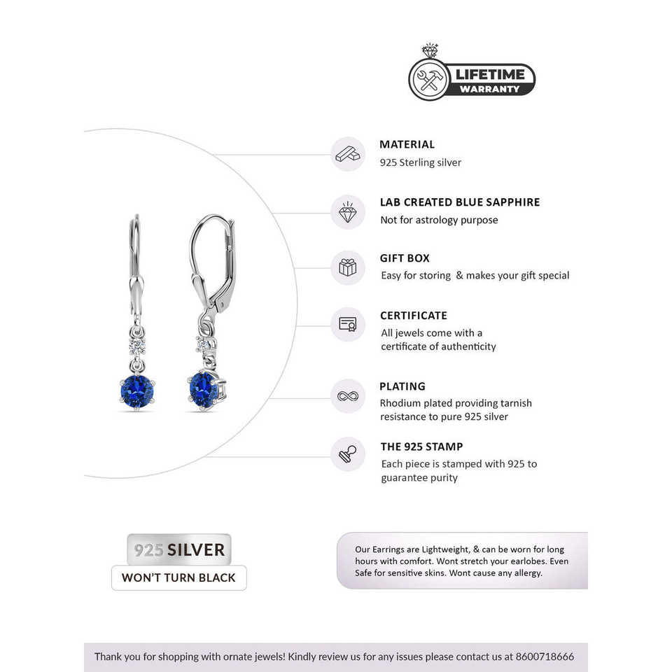 Ornate Jewels Women's Blue Sapphire Dangle Earrings 925 Silver Fashion Dangle for Women