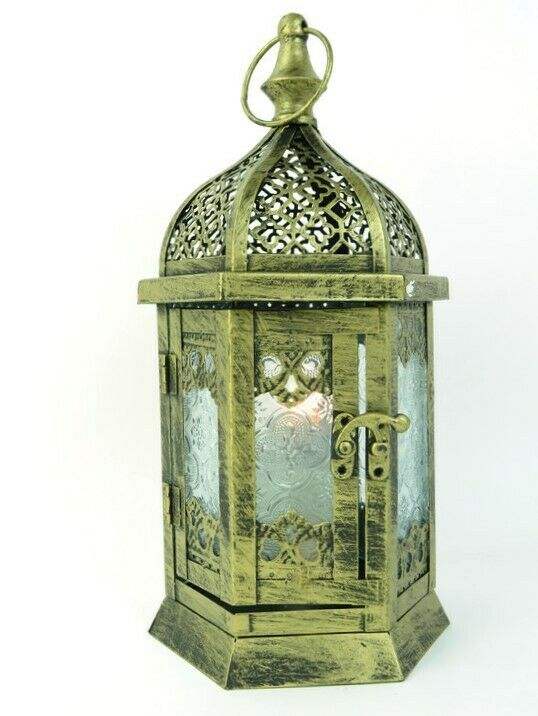 Ornate Moroccan Gold Design Lantern Handmade Large Candle Holder with Metal and Glass Sides for Home Decoration for Christmas
