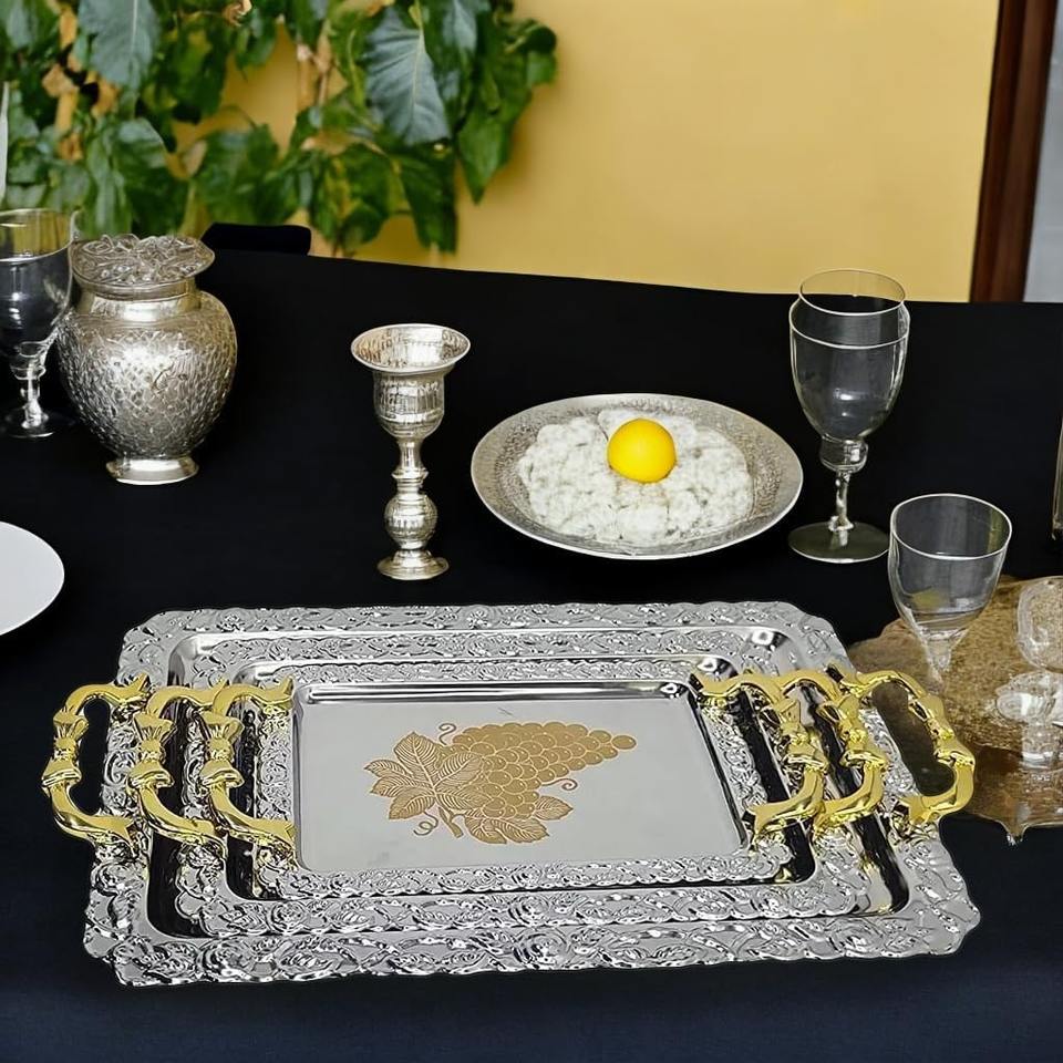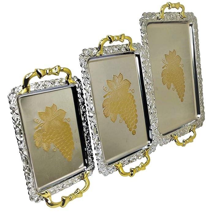 Product name:Silver Mirrored Vanity Tray Ornate Filigree Rim Rectangular Tray