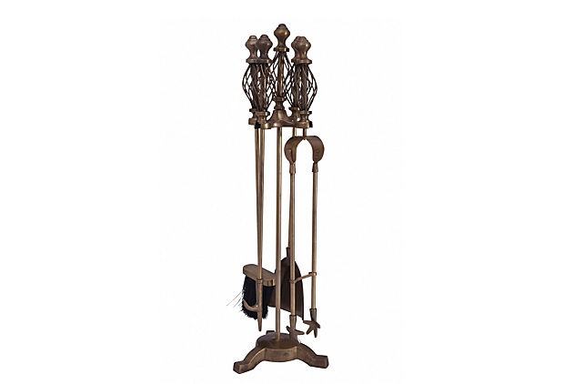 Ornate design iron fire tools set with sturdy stand and timeless beauty perfect for cozy evening fireplace settings
