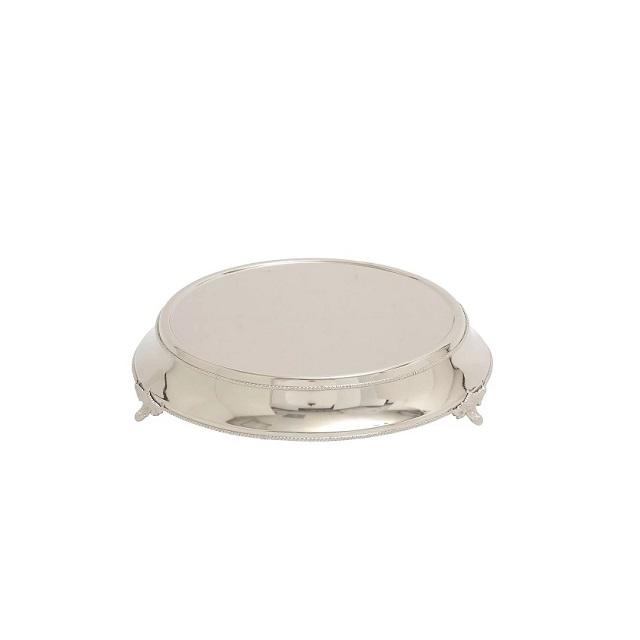 Ornate handmade metal cake stand with floral design for elegant event dessert displays and formal parties
