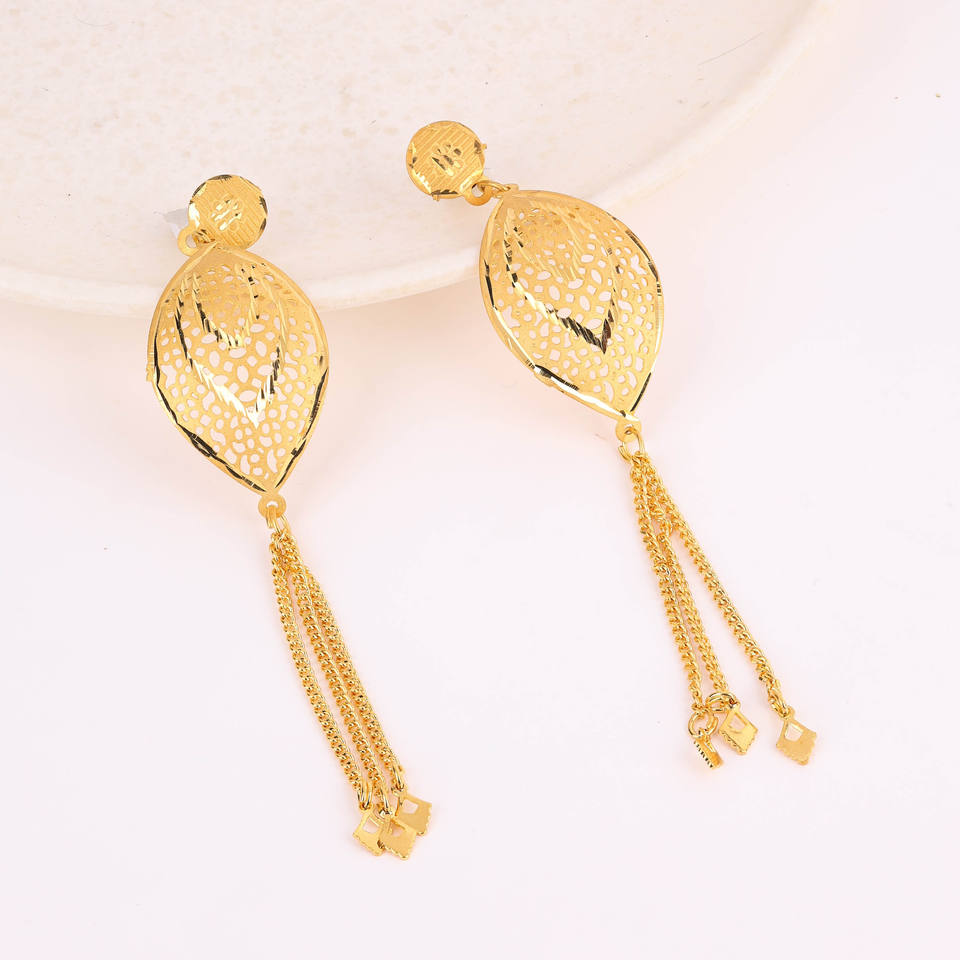 Oro Joyeria Luxury Gold Plated Brass Earrings Modern Long Earrings Fashionable Jewelry for Weddings and Special Occasions