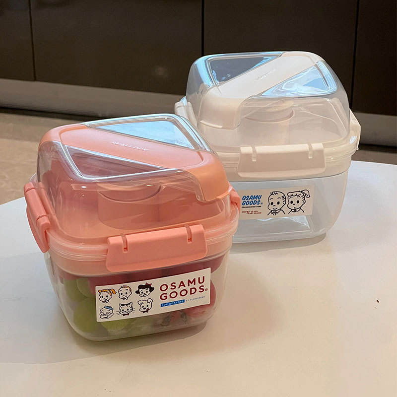 Osamu Goods Lunch Box Rectangle Plastic Lid Microwave Safe Food Storage Container 1.2L For Outdoor Picnic