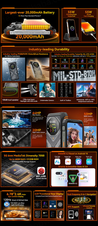 feature:COMPASS, Dual SIM Card, waterproof, Beauty Camera, NFC, Fingerprint, Night Vision