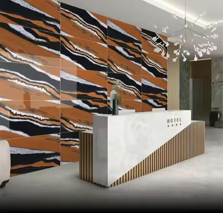 Osho Brown Hot Sale Floor Tile 60x120 600x1200 Polished Marble Look Glossy Glaze Porcelain Premium