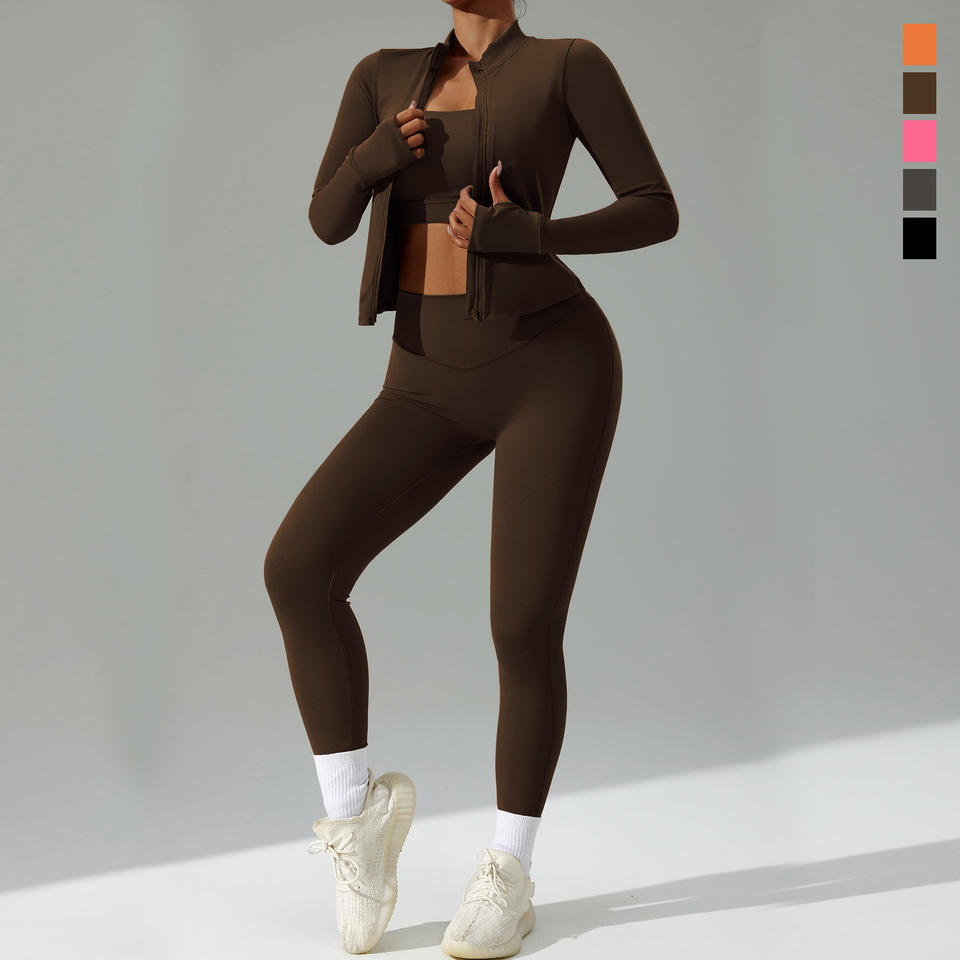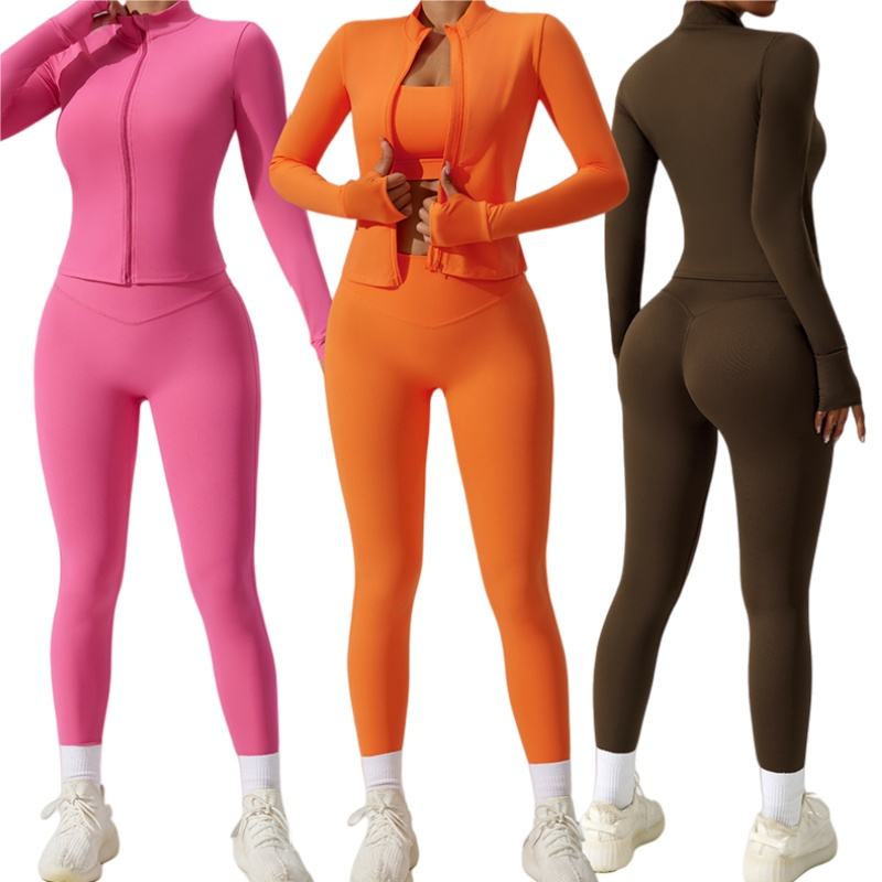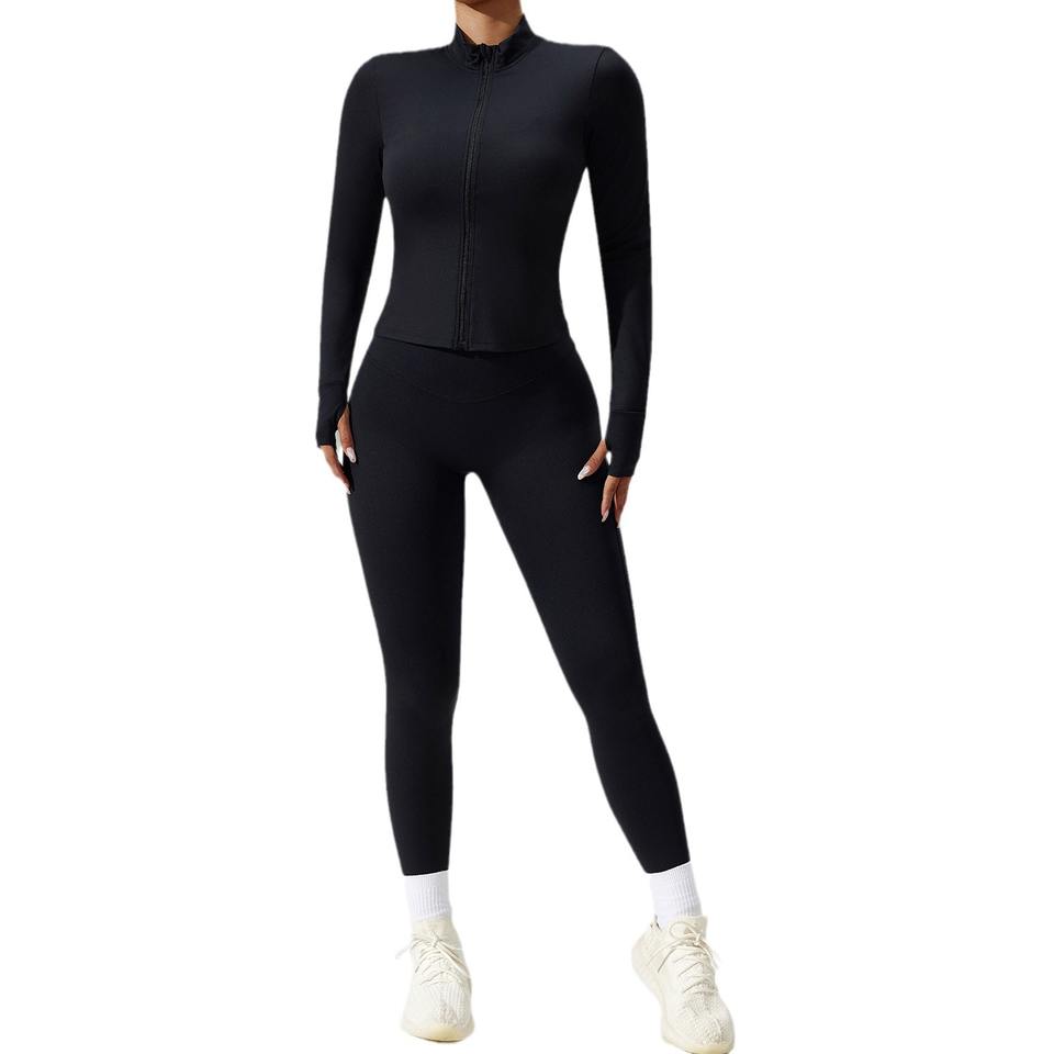 Other Women's Yoga Set Long Sleeve Zipper Top High Waist Leggings Solid Color Spandex Fitness Workout Wear XS To 3XL