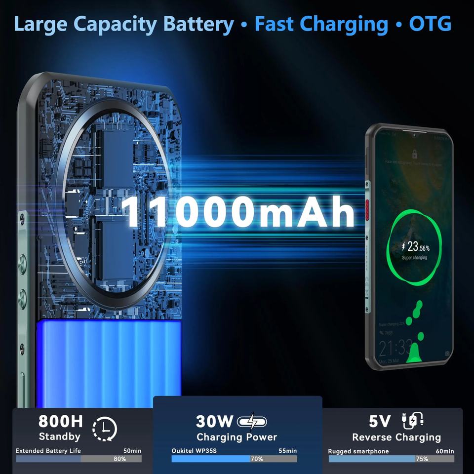Oukitel Wp35 Rugged Smartphone 5g 11000mah 64mp Main Camera Android 14 Nfc 8+256gb 6.6 Inch 2k Display night Vision Camera Phone
