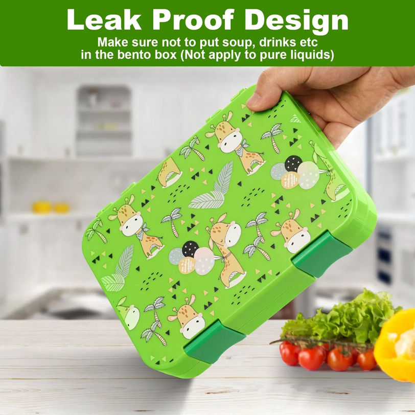 Oumeng Kids Plastic Bento Lunch Box 4/6 Compartments Microwave Safe Food Storage Container Friendly Lunch Box