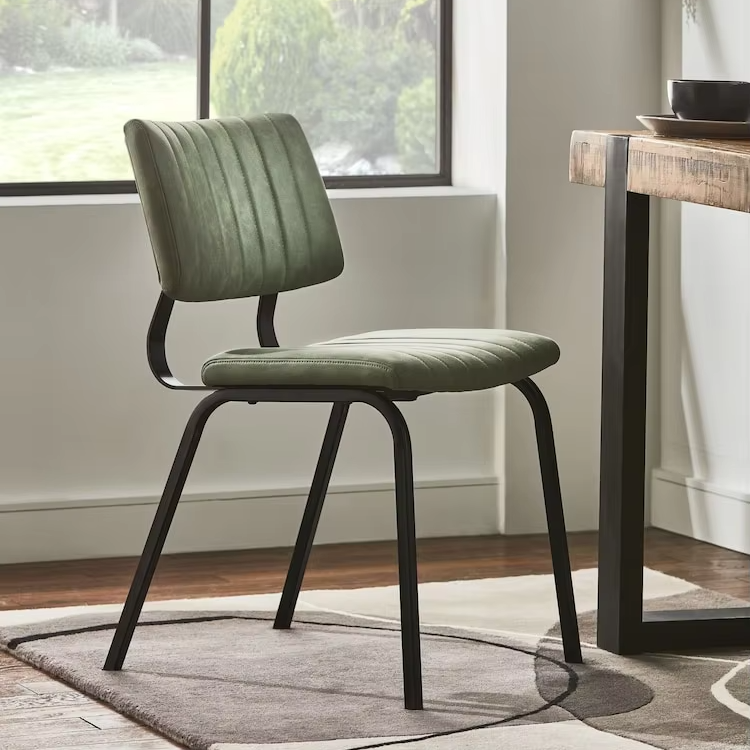 Our industrial Aiden dining chair features a faux leather back and seat, complemented for a modern 2308304