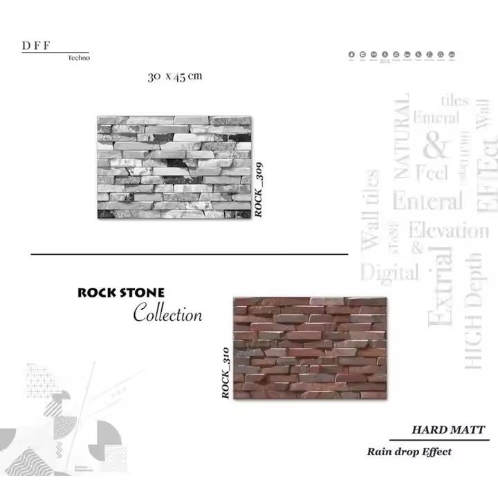 Outdoor 300x450mm 18x12 Embossed Satin Matte Porcelain Wall Tiles 10mm Thick Digital Ceramic Elevation Tiles