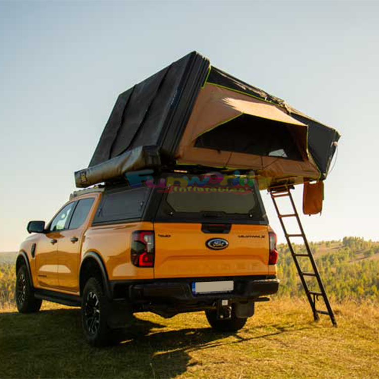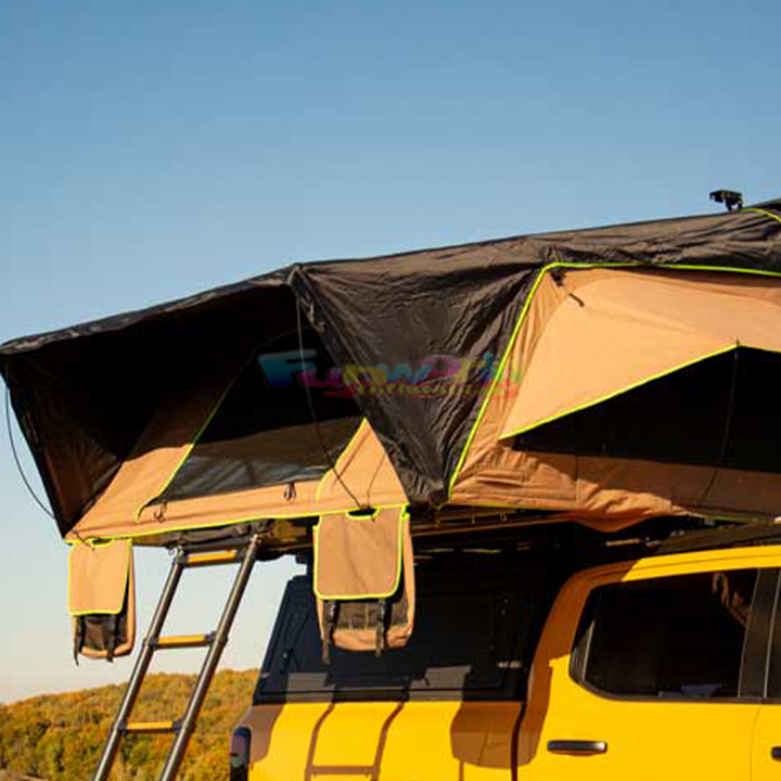 Outdoor 4 Person Side Fold Out Car Top Roof Tent Hard Shell Aluminum Rooftop Tents Side Opening Hybrid Roof Top Tent With Rack