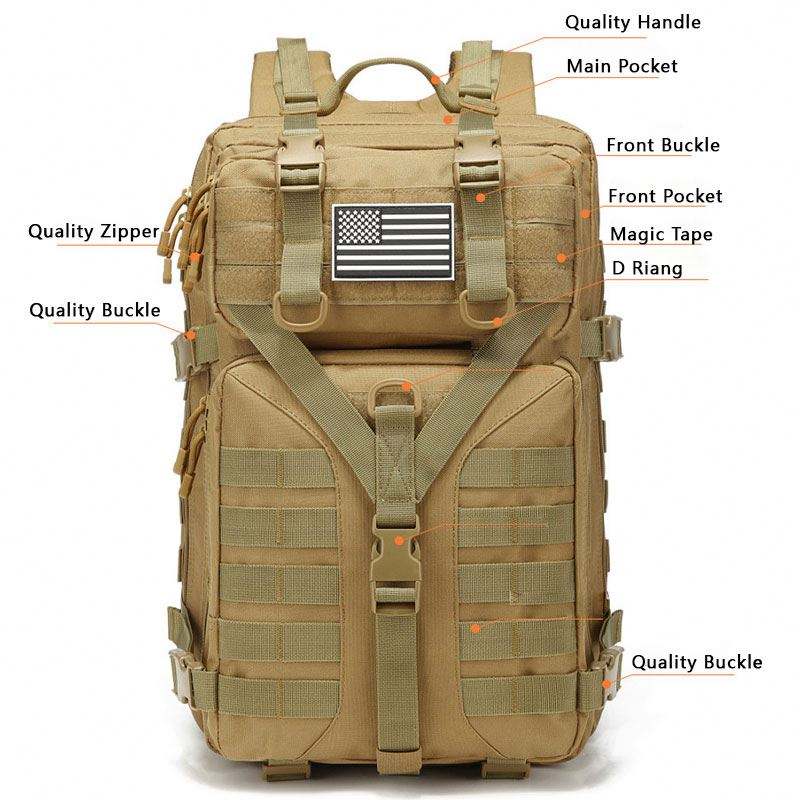 Outdoor 40L Tactical Assault Pack JungleBackpack Waterproof Molle Rucksack Anti-Theft Feature Polyester Lining Hunting Trekking