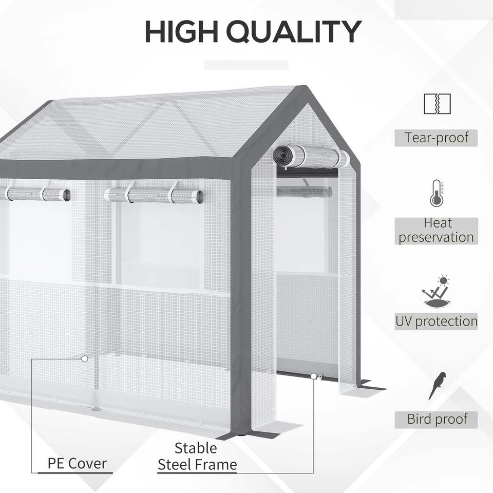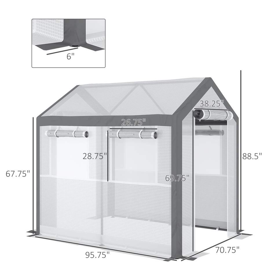 Outdoor 8' L X 6' W X 7.4' H Walk-In Tunnel Greenhouse with Roll-up Windows & Zippered Doors Weather Cover for Garden