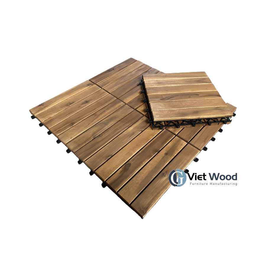 Outdoor Acacia Wood Patio Deck Tiles Interlocking Waterproof Flooring