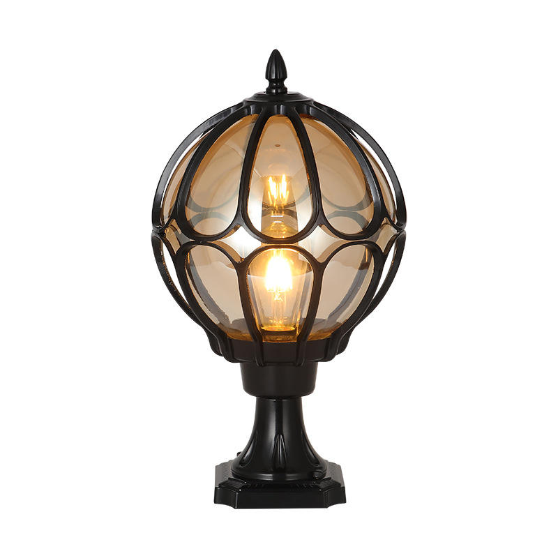 Outdoor Antique LED Pillar Lamp with E27 Base Rainproof and Waterproof Glass Globe Shade for Garden Post Lighting IP65 Rating