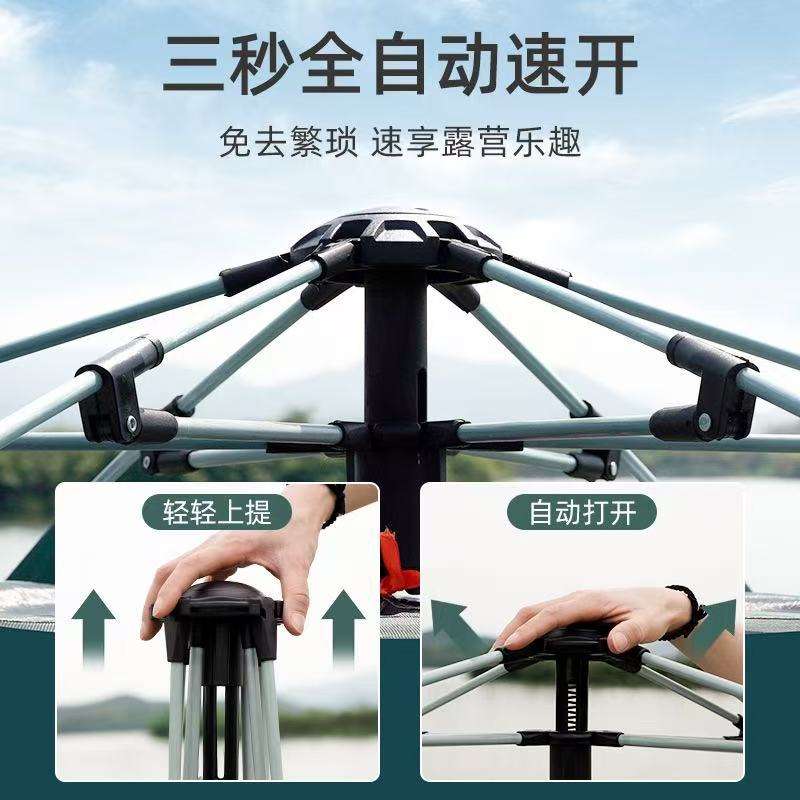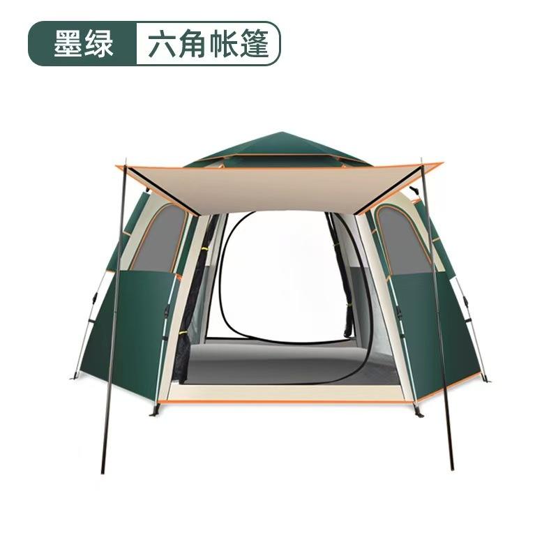 Outdoor Automatic Camping Tent 3-4 Person Hexagonal Beach Tent Single Layer Dark Green Sky Blue 215x215x142cm Waterproof