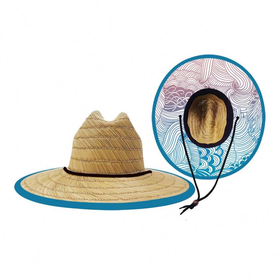 Outdoor Beach Fishing Lifeguard Straw Hats Waves Panama Sombrero Natural Straw Bottom Print Men Hats