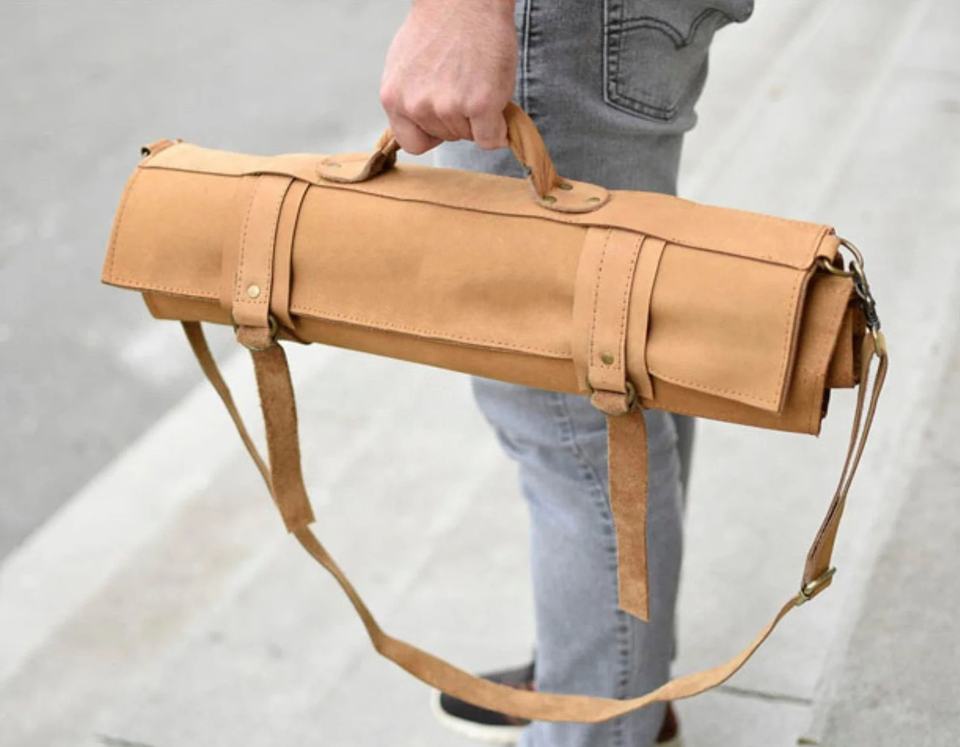 Outdoor Brown Leather Knife Tool Roll up Tableware Knife Organizer Small Roll Bags LKR-0023