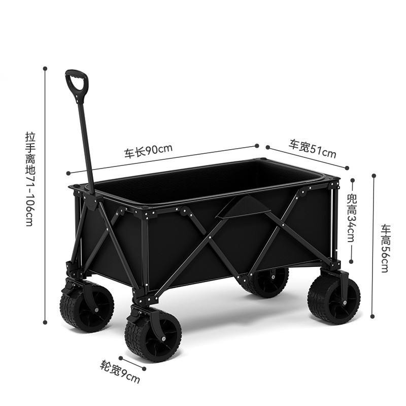 Outdoor Camping Cart 100Kg Load Capacity Four-Wheel Folding Shopping Trolley Khaki Color Carbon Steel Frame
