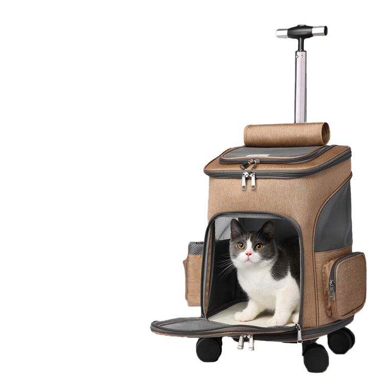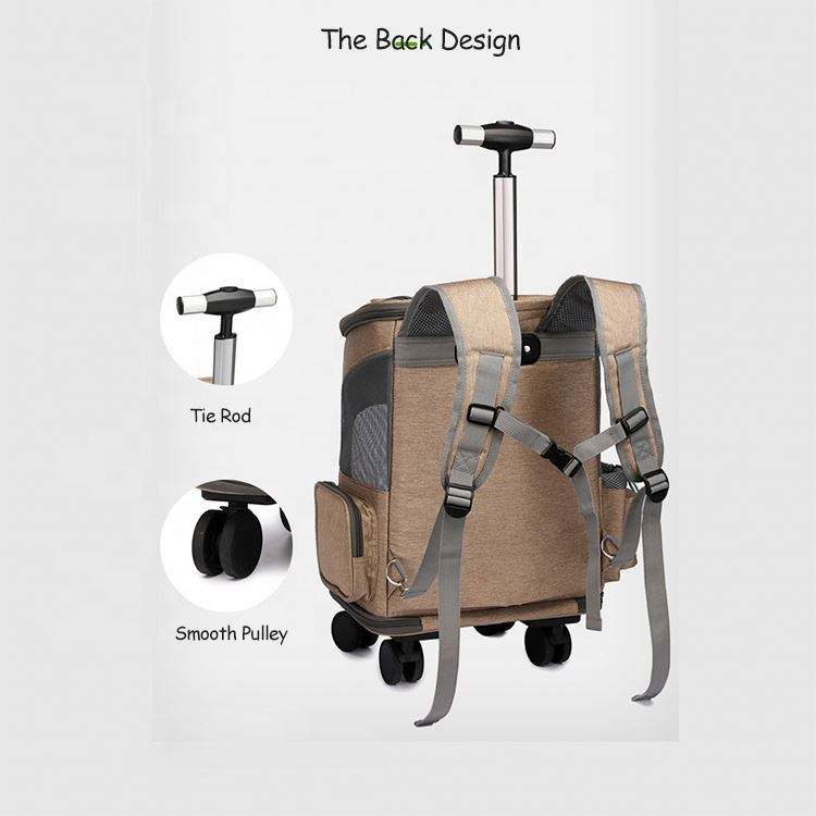 Outdoor Comfort Luxury Soft Breathable Mesh Ventilated Rolling Wheels Pet Travel Carrier Trolley Bag for Dog Cat