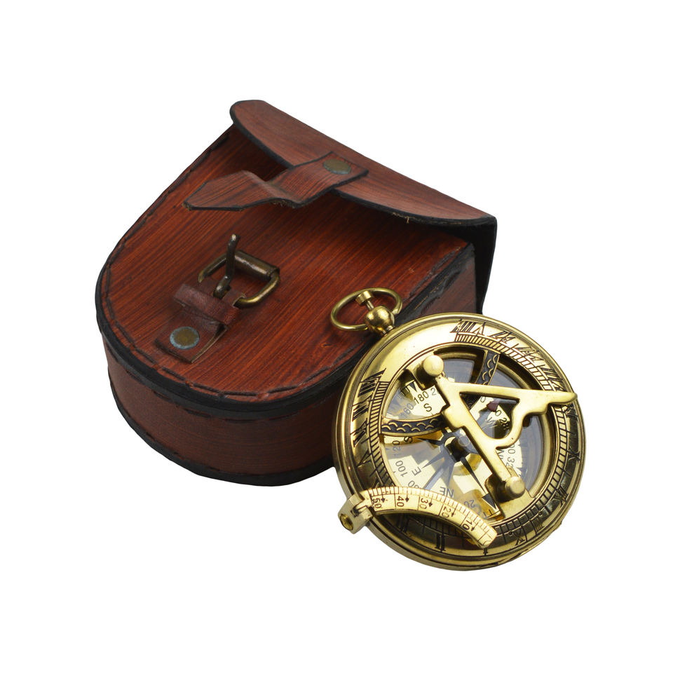 Outdoor Compass Nautical Gadgets Gold Brass Compass for Camping and Sports Design With Leather Case Packing Top Quality Luminous