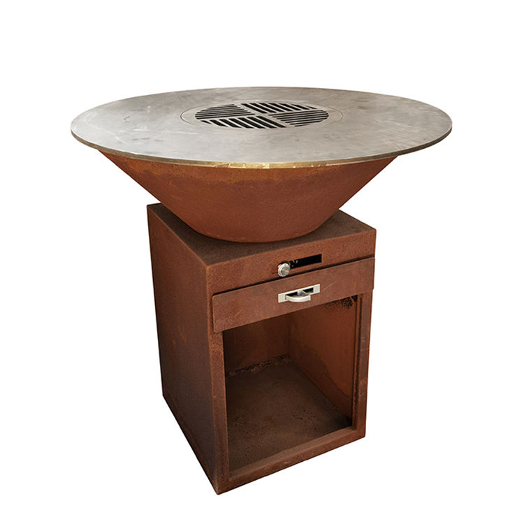 Outdoor Corten BBQ Grill with Firewood Storage All-in-One Charcoal Barbecue for Gardens With Drawer