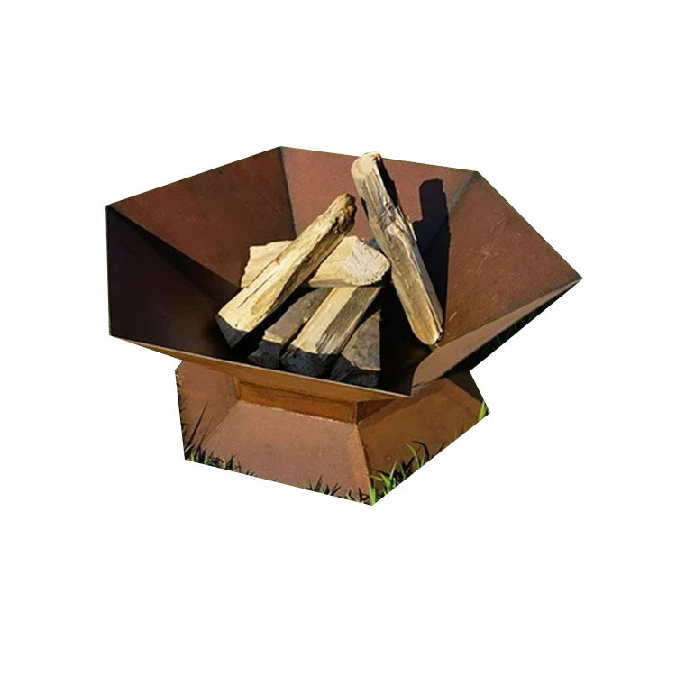 Outdoor Corten Steel Outdoor Hexagonal floor-standing wood-burning fire pit for garden