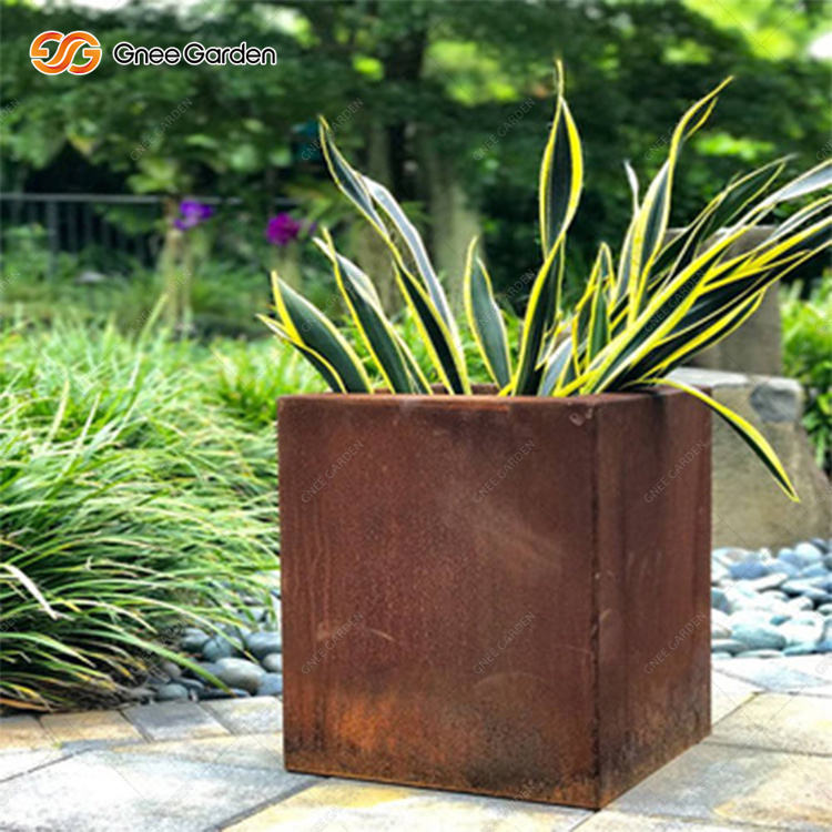 Outdoor Corten Steel Square Planter 24-inch Large Rustic American Style Flower Pot for Home & Garden Decoration