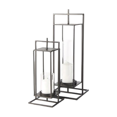 Outdoor Decoration Metal Iron Wire Lantern Matt Black Colour Lantern Lamp and Candle Pillar Holder for Christmas Decooration