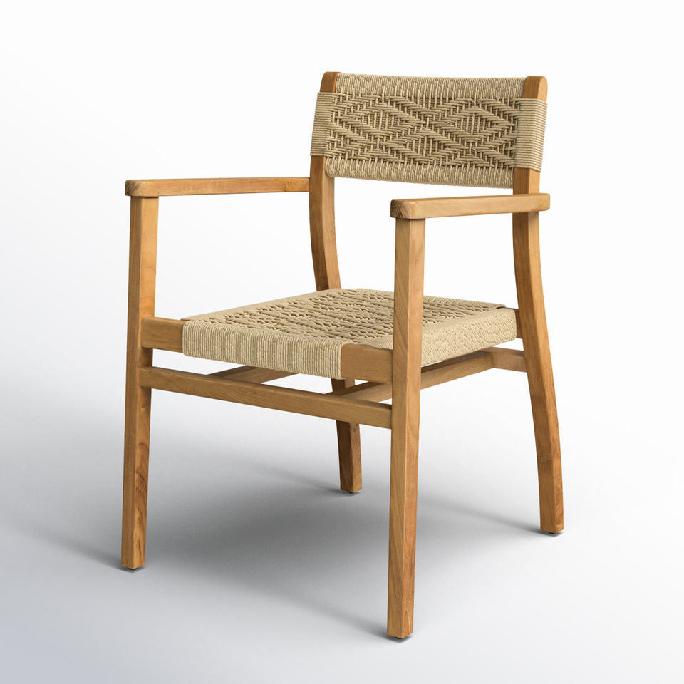 Outdoor Dining Chair with Woven Rope and Teak Wood Frame