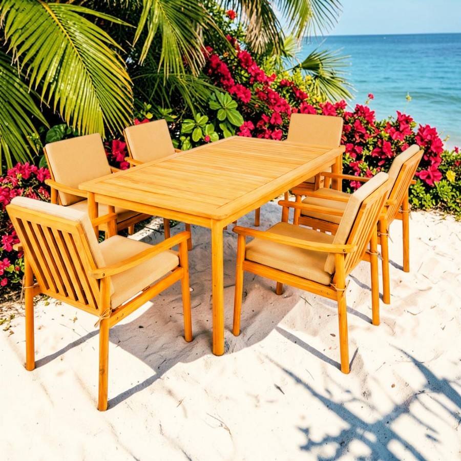 Outdoor Dining Set 7PCS Modern Foldable Solid Acacia Wood Comfortable & Durable Weather-Resistant Design