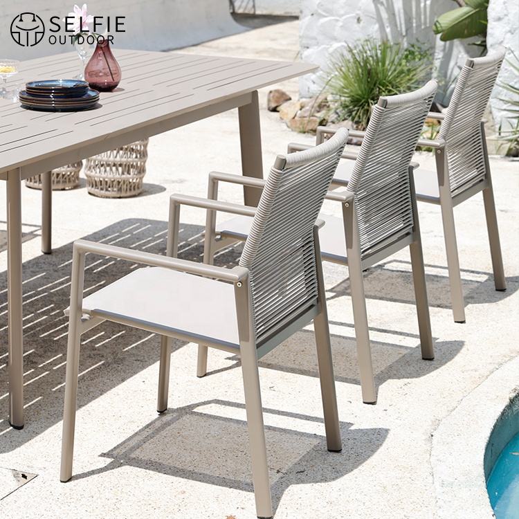 Modern Outdoor Dining Sets for Apartment Villa & Hotel Use Extendable Dining Table Chairs with Powder Coated Aluminum Frame