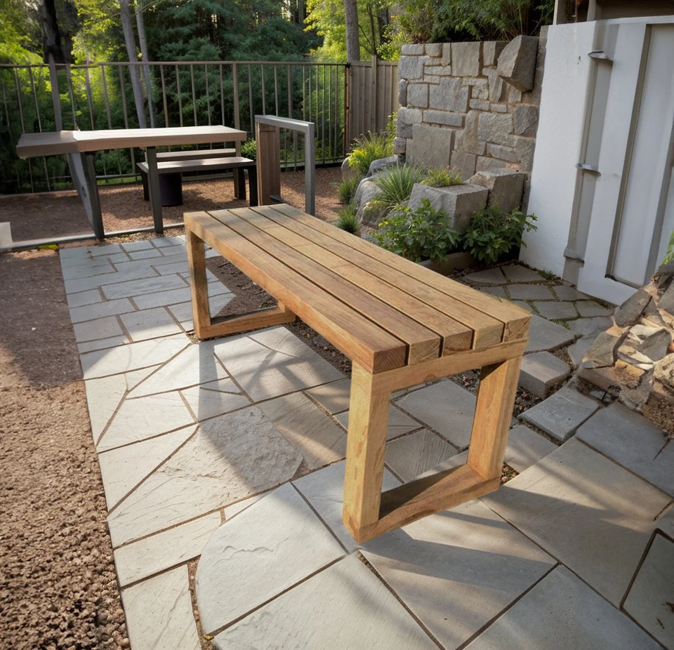 Outdoor Durable Stackable Solid Wood Garden Bench with Backrest Armrests and Slatted Seat for Patio and Yard