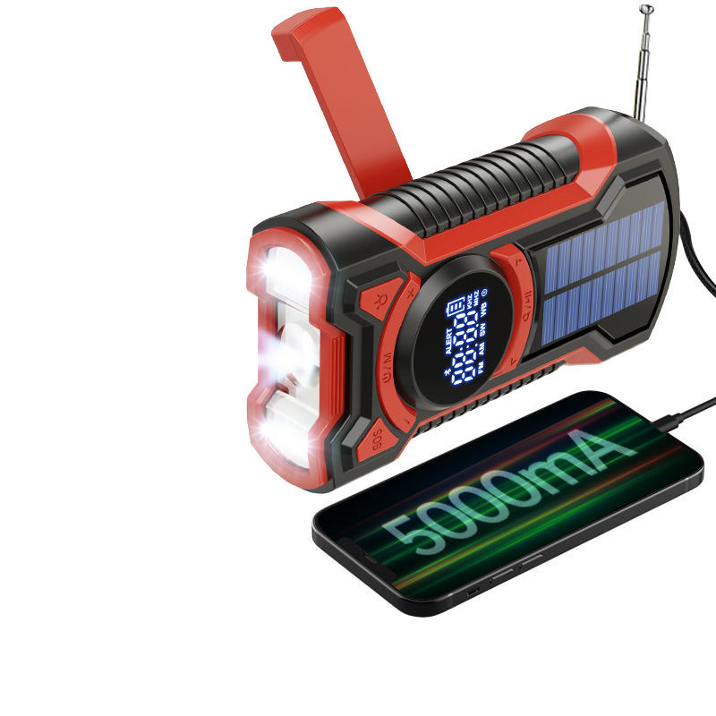 Outdoor Emergency Solar Radio BT AM FM SW LED Display Flashlight Hand-cranked Waterproof Travel Hiking Camp 5000mAh Power Bank