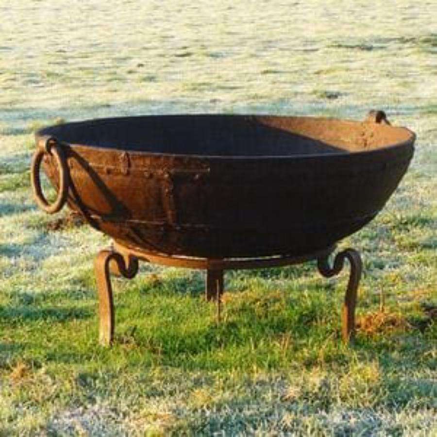 Outdoor Farmhouse Garden Display Kadai With Stand Rustic Fire Pit Bowl Rust Finished Cast iron Bonfire Outdoor Fire Pit For Sale