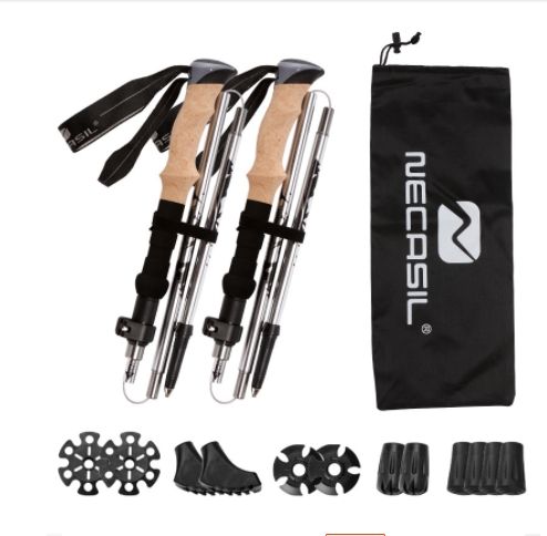 Outdoor Folding Trekking Poles Collapsible Nordic Hiking Poles Cork Handle 2pcs Ultralight Folding Walking Hiking Sticks