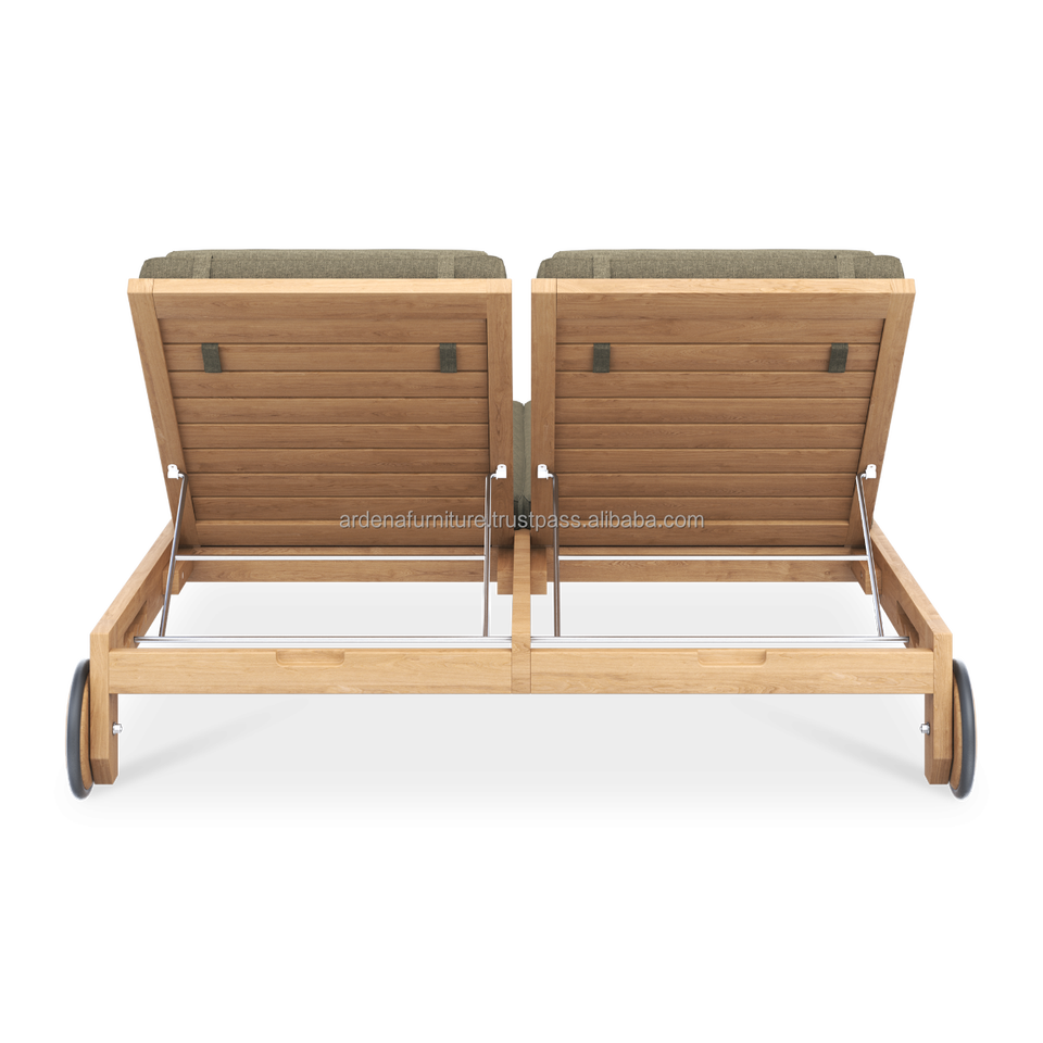 Modern Outdoor Teak Wood Furniture Beach Sun Lounger Solar Chair for Couples Reclining for Hotels Villas Exteriors